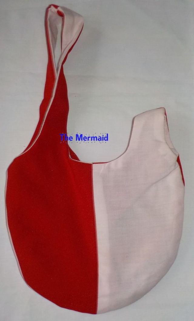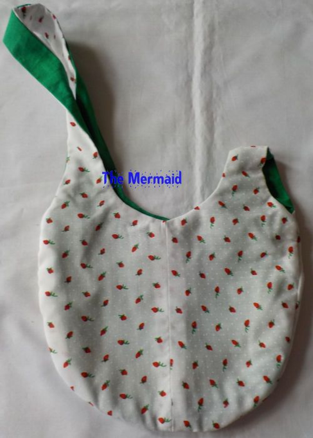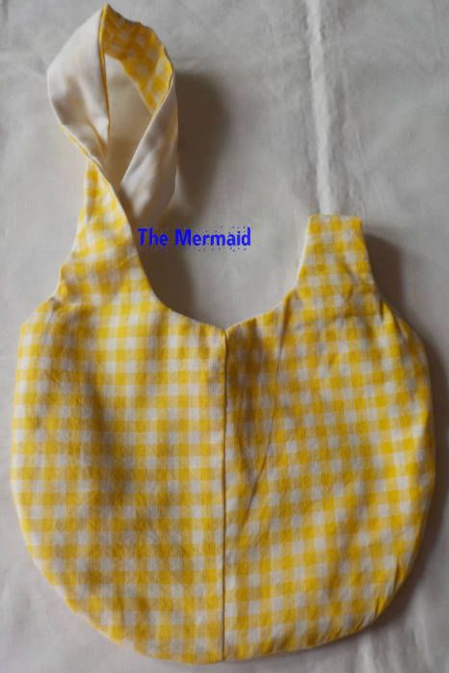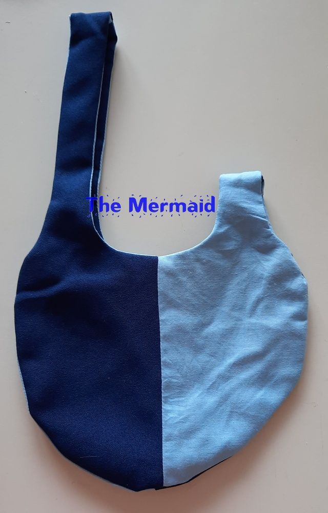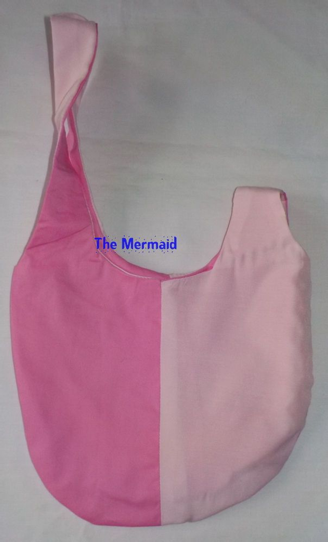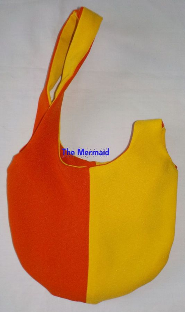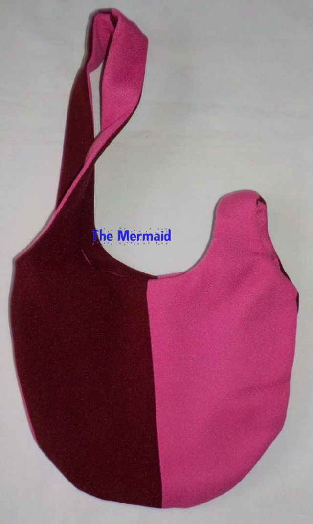 Japanse knooptasjes waarbij de kleine lus over de grote gaat om te sluiten. Deze tasjes zijn gedubbeld met een bijpassen kleurtje. Ze zijn gemaakt in een geweven stofje (katoen/polyester/...)