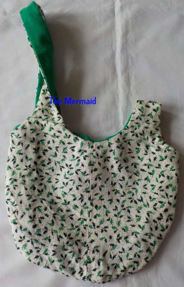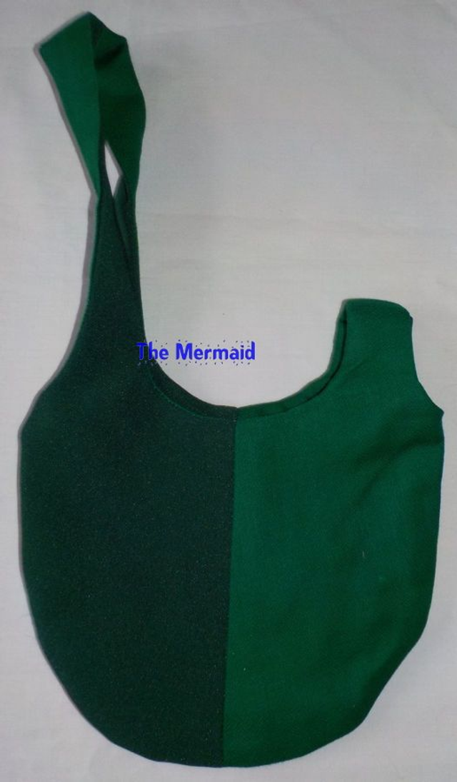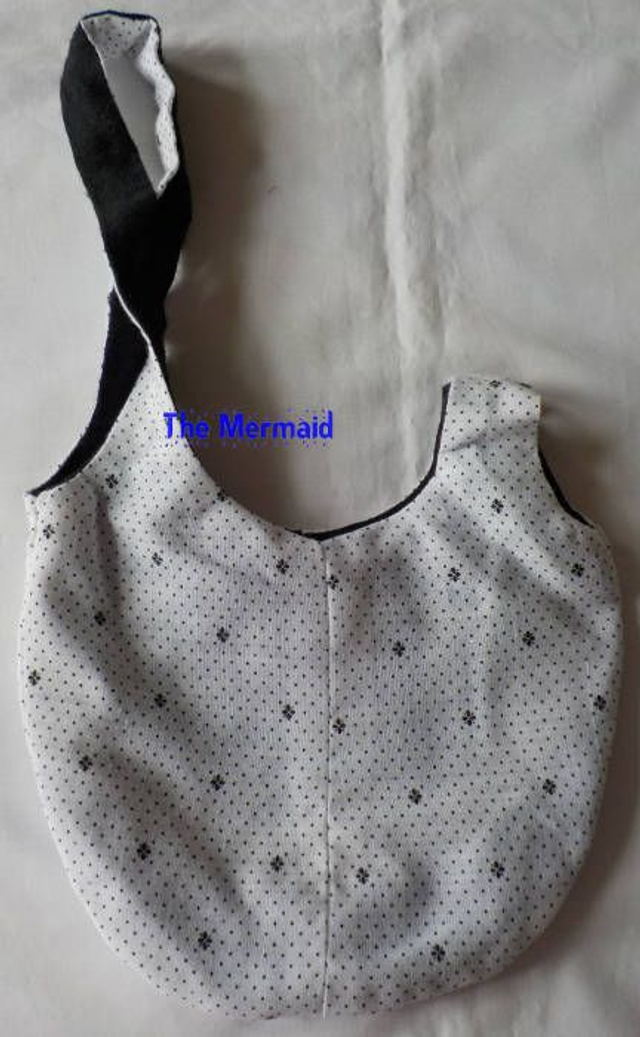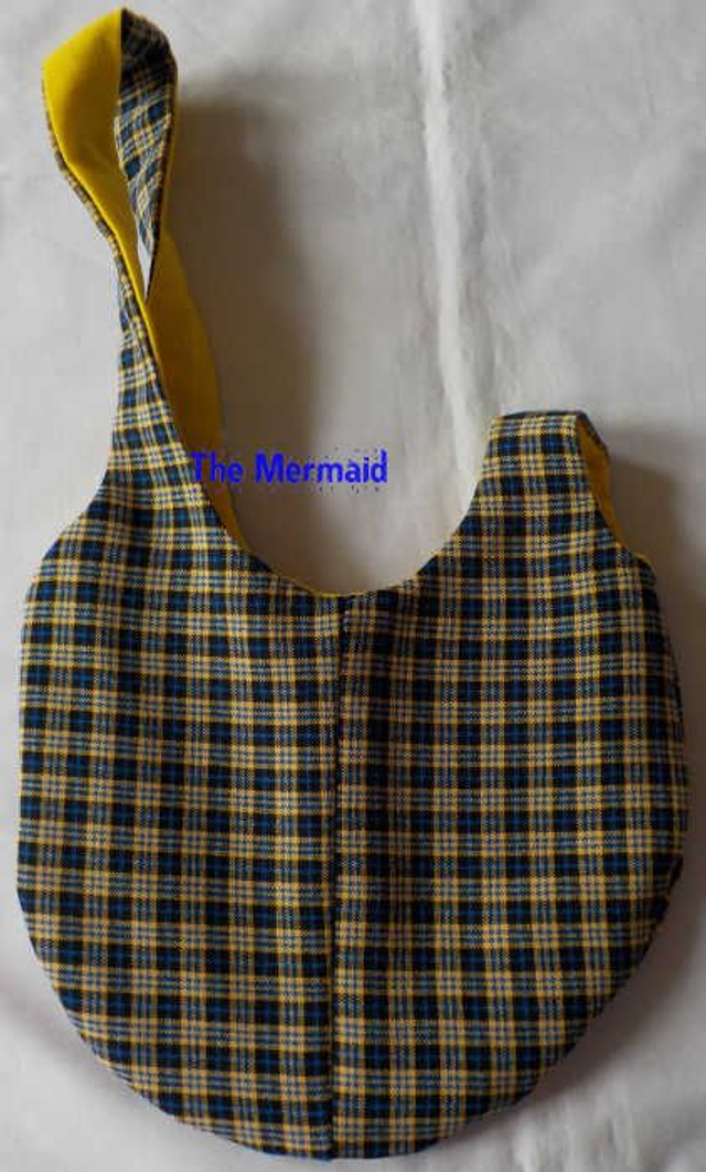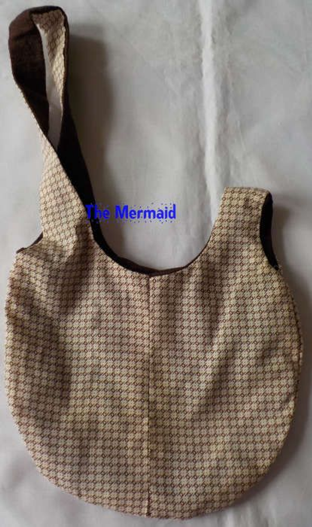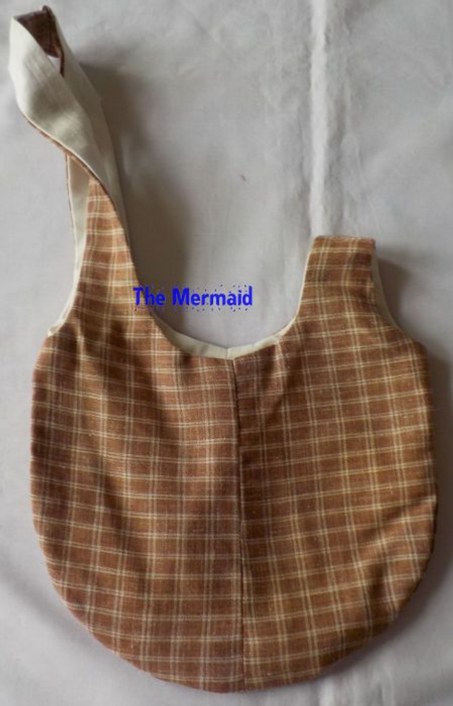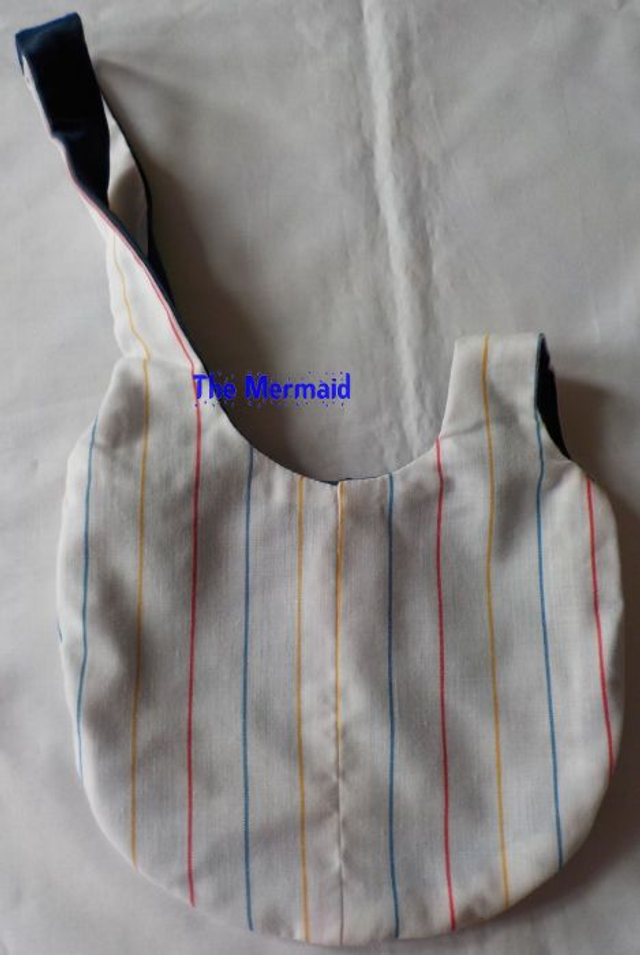 Japanse knooptasjes waarbij de kleine lus over de grote gaat om te sluiten. Deze tasjes zijn gedubbeld met een bijpassen kleurtje. Ze zijn gemaakt in een geweven stofje (katoen/polyester/...)