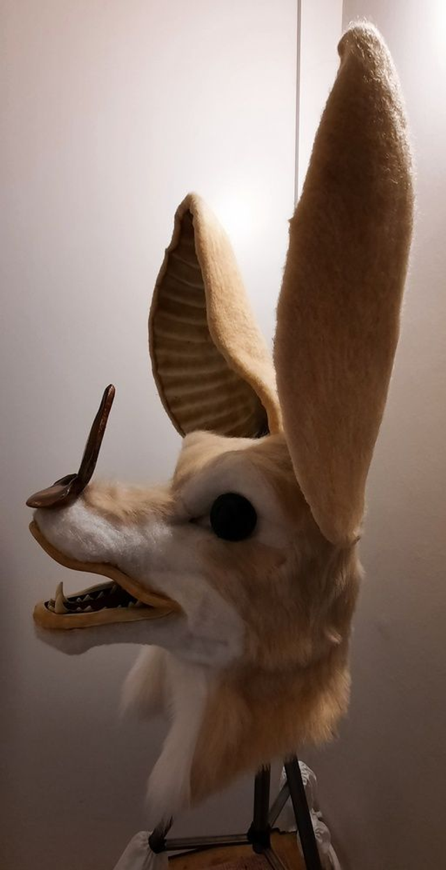 Dit vleermuishoofd heeft een bewegelijke mond, en past voor een hoofd kleiner dan 60 cm omtrek.