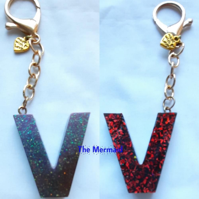 Deze sleutelhangers zijn gemaakt in resin en kunnen makkelijk ergens aanhangen. Ze zijn erg kleurrijk en hebben veel glitter. Maat: 4cm x 4cm; totale lengte: 12cm (maat kan per letter verschillen)